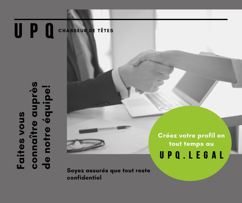 Que vous soyez en recherche active ou non, le meilleur moyen pour s'assurer de ne rien manquer est de vous créer un profil sur notre site internet www.upq.legal ...