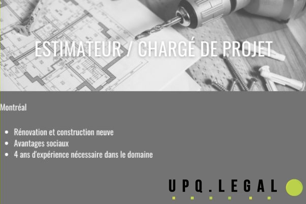 Notre client, un entrepreneur spécialité en construction neuve et en rénovations d'immeubles résidentiels et multi-logement. Il est à la recherche d'un Estimateur / Chargé de projet afin de compléter leur équipe qui travaille déjà sur des projets dans la Grande région de Montréal. For ...